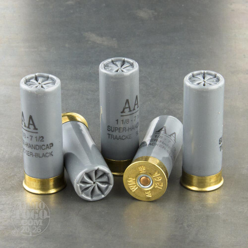 Looking to better hone your trap and skeet shooting skills, or for an edge the next time you’re competing? Then this 12 Gauge shotshell from Winchester’s AA TrAAcker line of shotgun ammunition has got everything to offer. This shell’s helical wad opens up after it leaves the muzzle to whirl away after its shot, giving you a clear visual on your aim. The wad has a trap built into it so that it can retain some shot, giving it the heft needed to track a spread accurately. This shell’s hull is black to indicate its black wad -- its color makes it more visible in clear day, as opposed to the alternative orange wad available with this shell which is ideal for darker or overcast conditions.This shell is loaded with 1 1/8 ounces of #7.5 shot. The .095” diameter pellets provide the range and pattern that are perfect for disintegrating clays, and they are hard and spherical to promote straight and accurate flight.