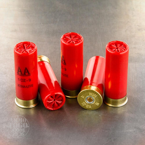 This 12 gauge ammunition from Winchester's AA series is a light target load perfect for longer clay shooting sessions. Each 2-3/4" shell in this box of 25 fires a one ounce column of #9 shot at 1,180 feet per second. This is a bit less than the typical 1-1/8 oz. payload and results in lower felt recoil and reduced fatigue. Winchester AA shells are loaded in the USA and use reliable primers and high quality wads.-