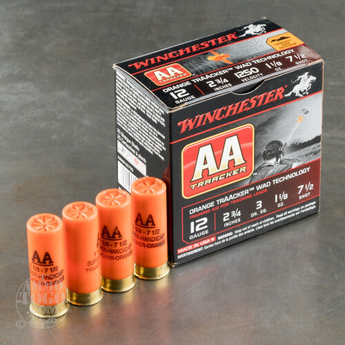 25rds - 12 Gauge Winchester AA Orange TrAAcker 2 3/4" 3 Dram 1 1/8oz. #7 1/2 Shot Ammo Details