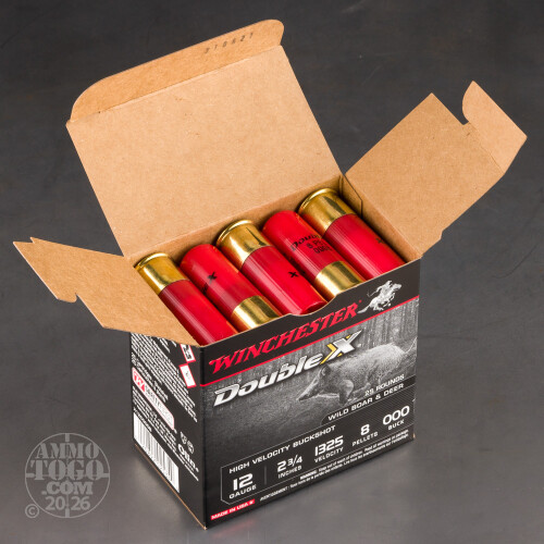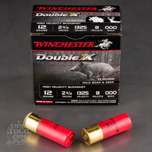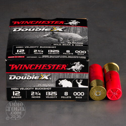 25rds – 12 Gauge Winchester Double X 2-3/4" 8 Pellets 000 Buckshot Ammo