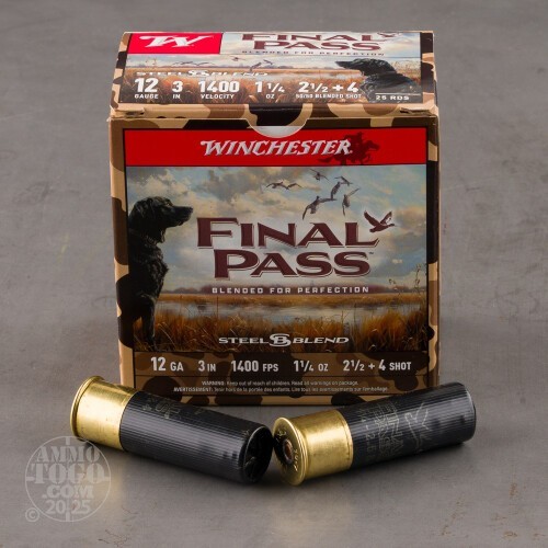Leave a ReviewWhy Shooters and Hunters love or hate 25rds – 12 Gauge Winchester Final Pass 3" 1-1/4oz. #2.5 & #4 Steel Shot Ammo