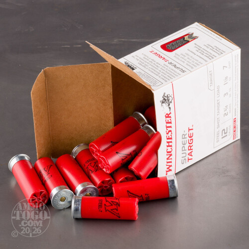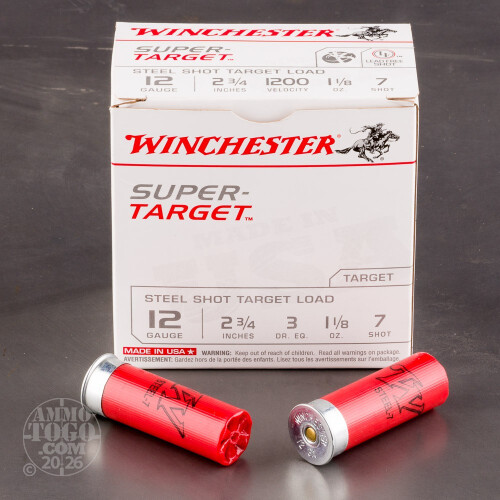 25rds – 12 Gauge Winchester Super Target 2-3/4" 1-1/8 oz. #7 Steel Shot Ammo Details