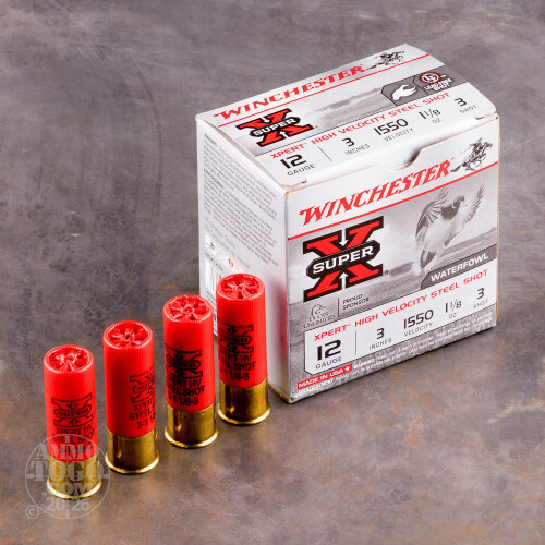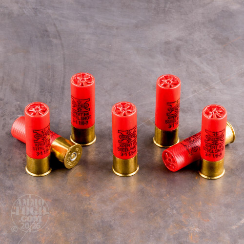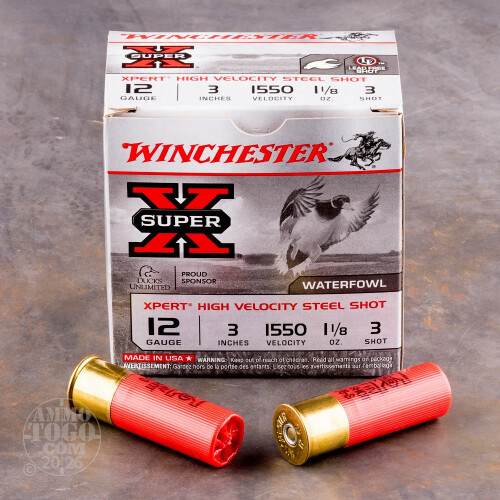These 12 Gauge shells from Winchester are a great choice for waterfowl hunting. Winchester's Super-X line of ammunition delivers exceptional quality and outstanding performance. Each hull in this box of 25 is 3" and carries a 1-1/8 oz payload of #3 non-toxic steel shot. Winchester uses powerful high brass shells and one-pieced hinged wads to keep your patter tight while reducing felt recoil. Hunters all over the world trust Winchester's consistent, dependable performance.-