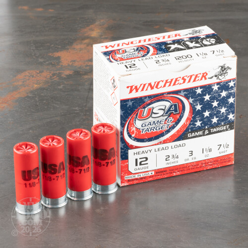 Winchester’s white USA label has let shooters know they’re getting a great deal for nearly 100 years now. Each 12 Gauge shotshell in this box is made of high grade components, assembled with great care, inspected through and through, and available for a price that won’t make you regret firing your shotgun exactly as much as you please.USA Game & Target shells don’t limit what you can do with your shotgun. Granted, this isn’t the shell you’d to take buck hunting, but its 1 1/8 ounce load of #7.5 shot suits it as well for trap, skeet, and sporting clays as it does upland game hunting. Count on the dense spread of shot you need to make short work of clay and bird alike with this shell, and look forward to implementing its sturdy brass and plastic at a reloading bench. And if you’re really uncertain of how much hunting/trap shooting you’ll be doing, check out our great deal on this ammo by the case!