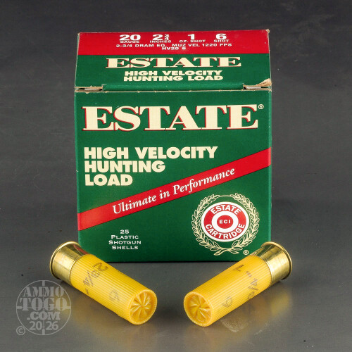 25rds - 20 Gauge Estate HV Hunting 2 3/4" 2 3/4 Dram 1oz. #6 Shot Ammo