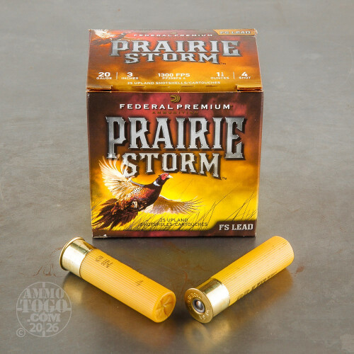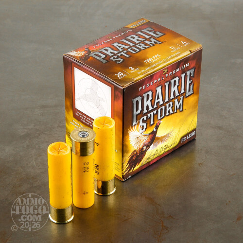 25rds – 20 Gauge Federal Prairie Storm FS Lead 3" 1-1/4oz. #4 Shot Ammo