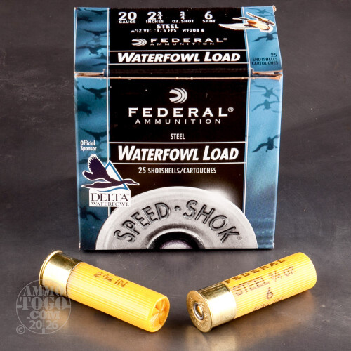 25rds – 20 Gauge Federal Speed-Shok 2-3/4" 3/4oz. #6 Steel Shot Ammo Details
