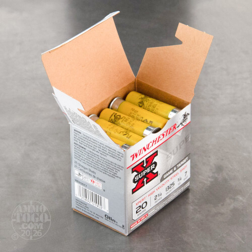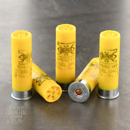 Ideal for sporting clays, target shooting, and hunting upland birds in areas where lead shot is restricted, these Winchester Xpert 20 gauge shotgun loads are non-toxic and economically priced. Each 2 ¾ inch factory fresh shotgun shell is loaded with ¾ ounces of #7 steel shot. Each round produces a consistent muzzle velocity of 1325 feet per second. This ammunition comes packaged in 25-round boxes.