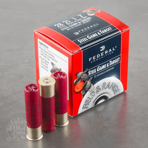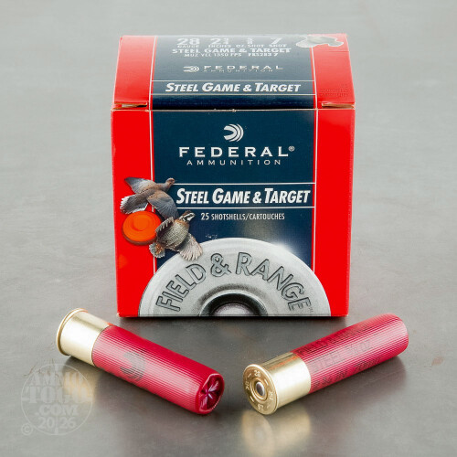 This is 28 Gauge Federal Steel Game and Target 2 3/4" 5/8oz. #7. These field and range shotshells are designed for recreational target shooting applications including Trap, Skeet, Sporting Clays and Hand Trap. This ammo is packed in 25rd. boxes.