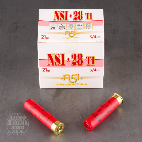 25rds – 28 Gauge NobelSport 2-3/4" 3/4oz. #7.5 Shot Ammo Details