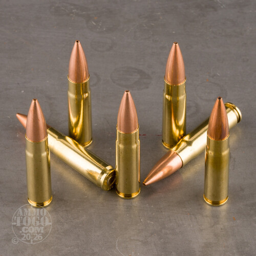 This 300 AAC Blackout cartridge by Fiocchi features the MatchKing, Sierra’s preeminent target projectile. The MatchKing sports a boat tail design, the tapered base of which minimizes the drag it creates in flight and also raises its ballistic coefficient to give it a flattened trajectory. This bullet’s hollow point does not serve to cause expansion during penetration, but the extremely narrow meplat does much further streamline its profile. The MatchKing’s overall weight and thin jacket’s concentricity are both controlled for at scientific levels of measurement, giving it consistent performance that will prove of great value whether you’re competing or simply testing the extent of your marksmanship.This round’s relatively heavy 220 grain projectile serves to assure that its velocity will not break the sound barrier. Its resultant soft report is ideal for subtle target shooting sessions, and when fired in conjunction with a silencer it is barely audible from a distance at all.