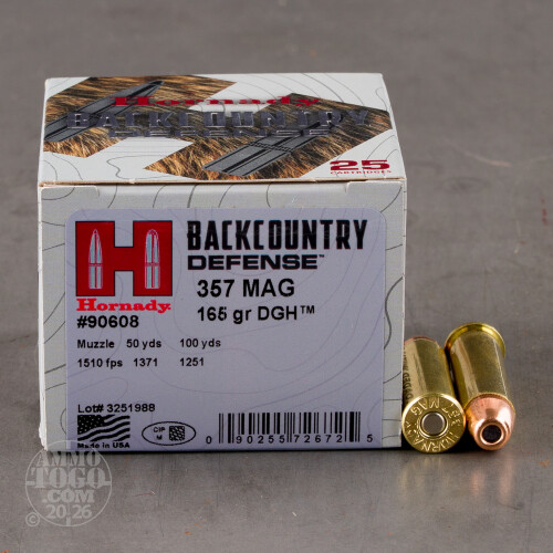 25rds – 357 Magnum Hornady Backcountry Defense 165gr. DGH Ammo Details
