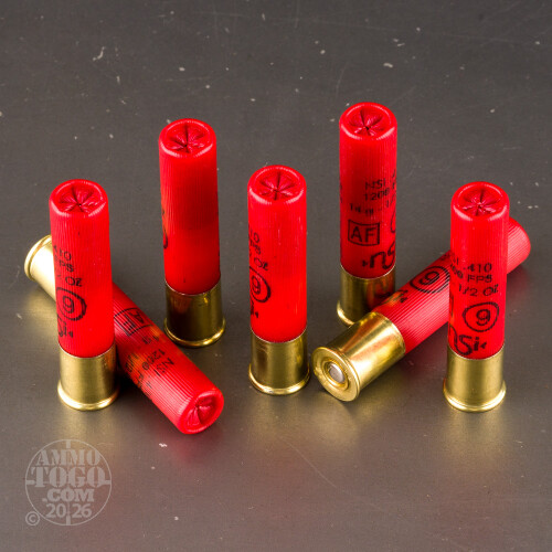 Although only established in 1993, NobelSport represents a long Italian tradition of making fine shotgun shells. You will find their ammo at the skeet range, which is exactly the sort of place you’ll also find this 410 Bore ammo shines best in. But if you’d rather chamber these 2-1/2” loads in your shotgun or revolver for pest control, it’ll do a great job there as well!This shell carries a 1/2 ounce charge of #9 shot. Such small 0.08" diameter shot pellets don’t inflict terribly much damage on their own, but nearly 300 of them will establish the very thick pattern you want while competing. NobelSport’s shot is made of lead-antimony alloy, which is hard enough to avert deformation that weakens pattern efficiency.