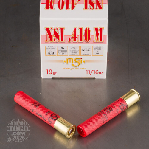 25rds - .410 Gauge NSI Hunting 3" Max Dram 11/16oz. #4 Shot Ammo