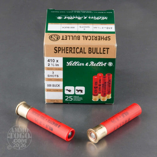 This is .410 Sellier & Bellot 2 1/2" 000 Buckshot Ammo. This ammo comes packed in 25rd. boxes.