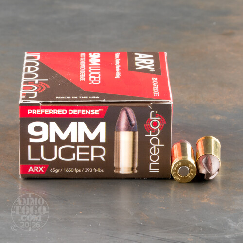 25rds – 9mm Inceptor 65gr. ARX Ammo