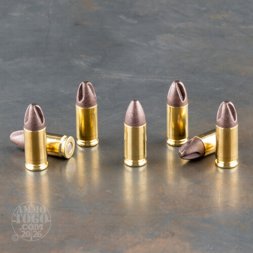 This 9mm round by Inceptor features the ARX, a revolutionary bullet that delivers devastating stopping power -- but without need for a hollow point nose cavity that could have tripped up feeding in a semi-automatic weapon. Instead, the ARX sports three precisely formed grooves that harness, pressurize, and laterally eject the soft tissue they engage up to two times faster than the bullet is traveling. The result is a particularly wide wound channel, the kind no one would like to have punctuating their torso, and a bullet that’s not prone to overpenetration to boot.Such a light bullet for a 9mm! That’s because the ARX contains no lead, and is made of a blend of nylon and copper instead. The insubstantial bullet is able to exit the muzzle exceptionally fast, and it does so without generating much of the recoil that can make follow-up shots less accurate. The ARX can’t lead your bore, and its injection molded design makes each bullet’s in-flight performance essentially interchangeable so can have have an easier time pegging your target.