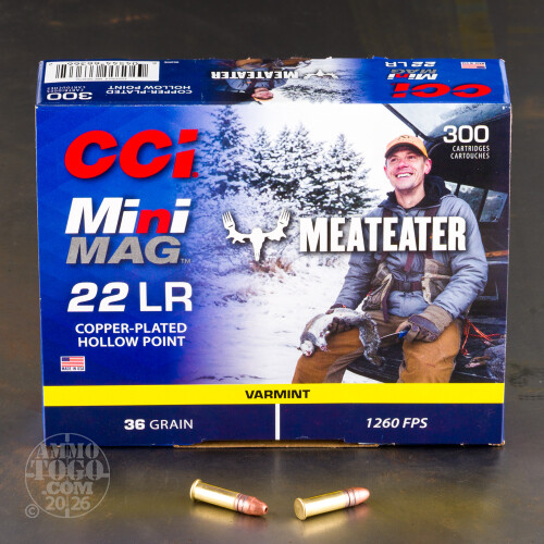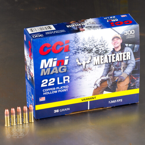 3000rds – 22 LR CCI Mini-Mag MeatEater 36gr. CPHP Ammo Details