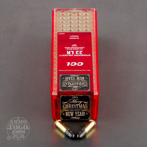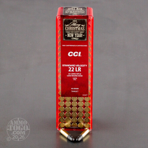 This is 300 rounds of CCI's 40 grain .22LR rimfire ammunition packaged in a presentable gift pack for the Winter season. The brightly colored red packaging and stylish text aim to please the shooters in your life by making this ammo the best gift for Christmas and New Years. The standard velocity rounds leave the muzzle at 1,070 feet per second and are great for use with or without a suppressor. CCI's legendary component quality promises reliable function and superb accuracy. These rounds come in three 100 round plastic containers which are packaged in an eye-pleasing gift box.-