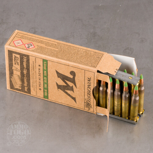 Here’s something fun you can do: Join the United States Army, and then refer to your magazine as a clip while you are within earshot of your drill instructor. He will appreciate the opportunity to help you learn!Here’s some ammo that can help you appreciate what clips really are. This box of 30 rounds is divided across three clips, so you can load your magazine lightning fast. It even includes a spoon (for loading ammo, not for eating). But the clips aren’t even the best thing about Winchester 5.56x45 62 grain FMJ M855 ammunition!