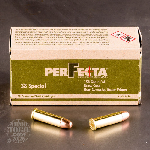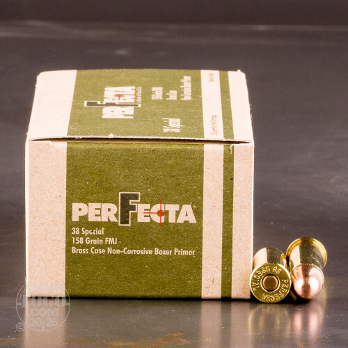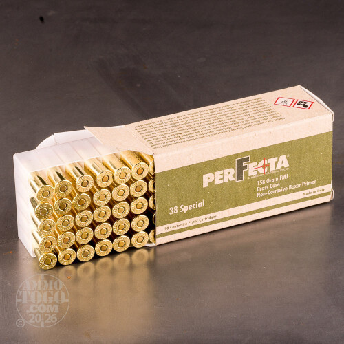 One of Italy's largest and oldest ammunition manufacturers, Fiocchi Munizioni has been a family-owned business since 1876. Their PerFecta line of ammo is produced using only high-quality components selected using careful and exacting standards. The components for Fiocchi PerFecta ammunition are assembled in the company's cutting-edge precision loading facility and is guaranteed to deliver reliable performance and dependable accuracy.This package features 50 rounds of economically-priced .38 Special ammunition that is perfect for plinking. Each round is loaded with a 158 grain full metal jacket (FMJ) projectile ideal for both paper and steel target shooting. These projectiles are designed with a round nose to promote easy cylinder insertion and a ribbed cannelure that helps increase shot accuracy after recoil.