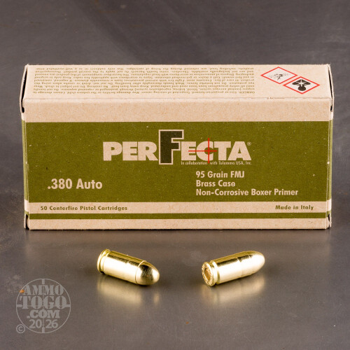 380 Auto - 95 gr FMJ - Fiocchi Perfecta - 1000 Rounds Details
