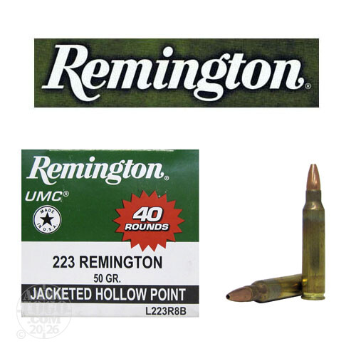 This is .223 Remington UMC 50gr Jacketed Hollow Point Ammo. Remington UMC ammunition uses first quality components to provide the best value for practice and varmint hunting. This ammunition is new production, non-corrosive, in boxer primed, reloadable brass cases. This ammo comes packed in 40 round boxes.