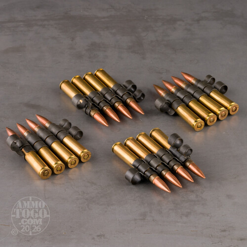 These cartridges are attached to one another with metal links – each string of links holds four rounds together. In the highly likely event that you do not own a belt-fed 30-06 firearm, you’ll find it extremely easy to detach the cartridges from their links.