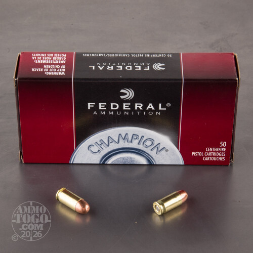 This is .380 Auto Federal Champion 95gr. Full Metal Jacket Ammo. This is quality target ammo at an affordable price. This ammo is brass cased, boxer primed and non-corrosive. It comes packed in 50rd. boxes, 400rds. per case.