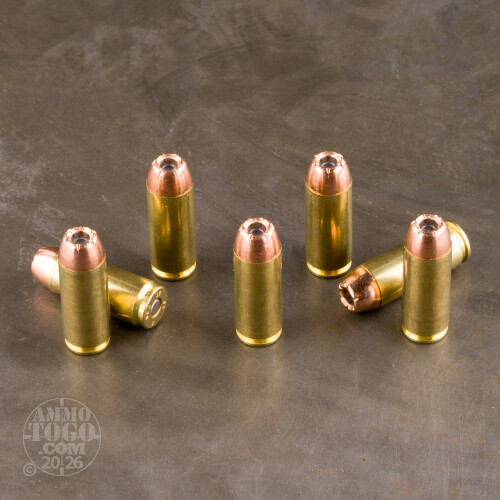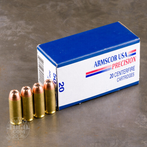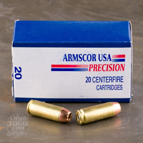 This Armscor load in .50 Action Express packs a powerful punch suitable for short range handgun hunting. Each round in this case of 400 fires a 300 grain Hornady XTP jacketed hollow point bullet that delivers deep penetration and strong expansion for a quick, clean kill. This ammo is loaded by Armscor's US division in Nevada and uses non-corrosive Boxer primers and brass cases.-