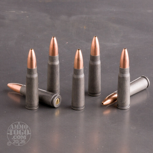 These hollow-point (HP) 7.62x39mm rounds from Tula are a perfect choice for keeping coyotes off of your property or excusing other big varmints from your garden. Each of these rounds is assembled using a clean-sparking Berdan primer which is installed into a non-reloadable, low-cost steel casing; the case bears a polymer coating for rust prevention in long-term storage. The 124 grain HP bullet used in this load has a narrow, open tip and thin jacket up front which is designed for rapid fragmentation on impact. 124 grains is a common weight for the caliber and will match the sight sets found on most AKs and SKSs.