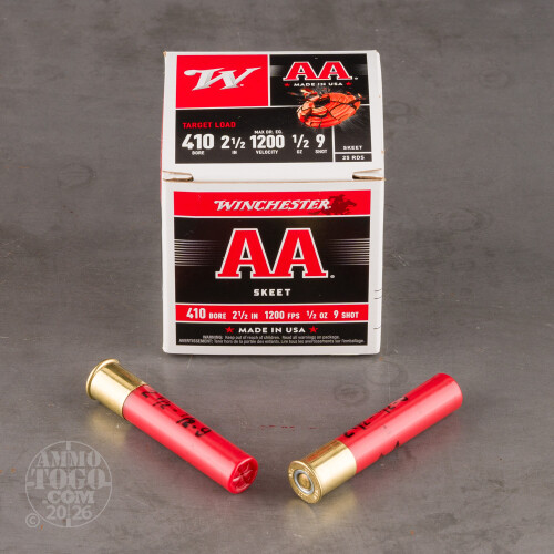 Leave a ReviewWhy Shooters and Hunters love or hate 25rds – 410 Bore Winchester AA 2-1/2" 1/2oz. #9 Shot Ammo