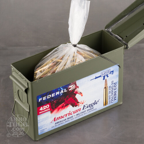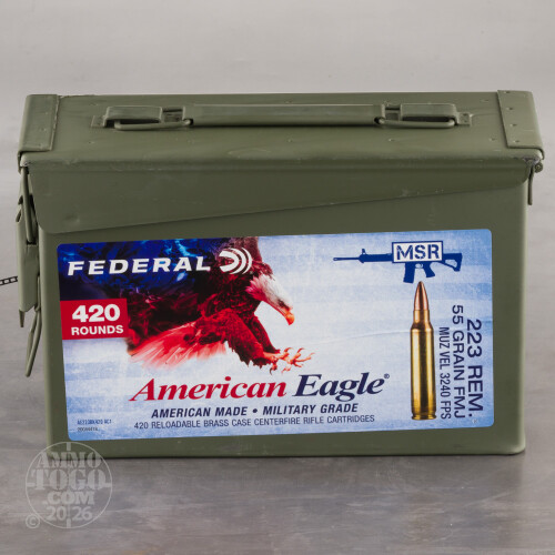 420rds – 223 Rem Federal American Eagle 55gr. FMJBT Ammo in Ammo Can