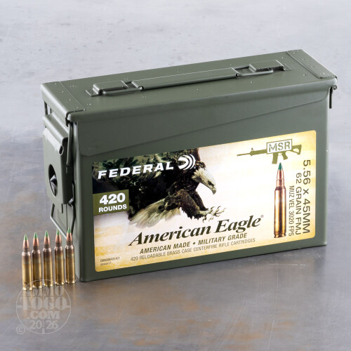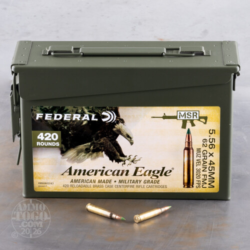 420rds – 5.56x45 Federal American Eagle 62gr. FMJBT XM855 Ammo in Ammo Can