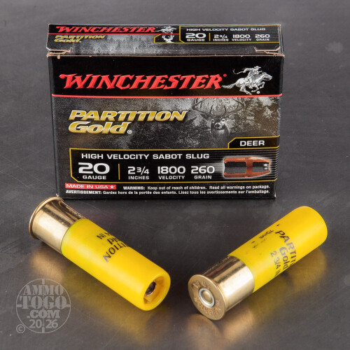 5 rds – 20 Gauge Winchester Partition Gold 260 gr. Sabot Slug Ammo