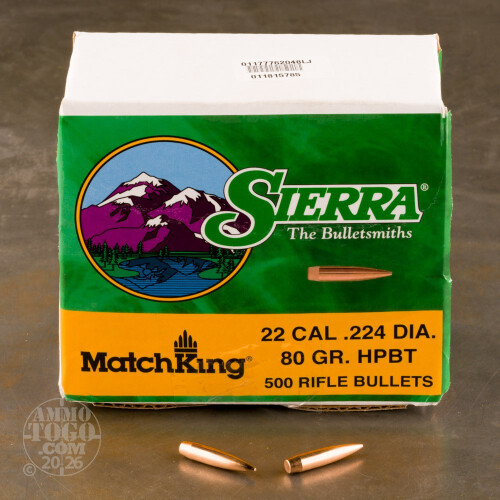 500pcs - 22 Cal .224" Dia Sierra MatchKing 80gr. HPBT Bullets