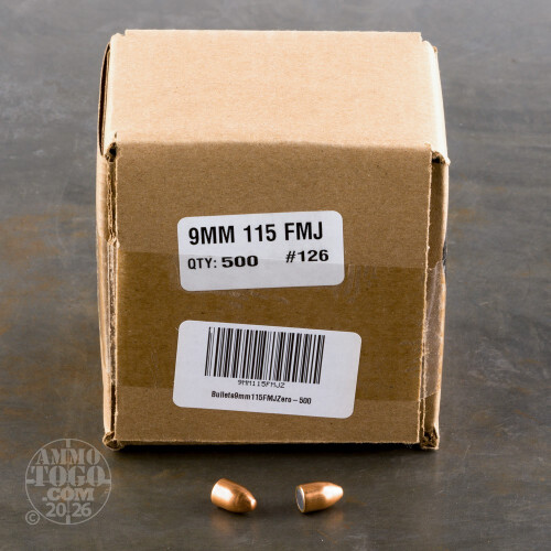 500pcs - 9mm .355" Dia Zero 115gr. FMJ Bullets