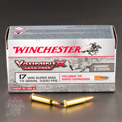 500rds – 17 WSM Winchester Varmint X Lead Free 15gr. Polymer Tip Ammo