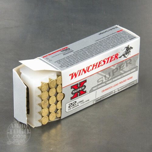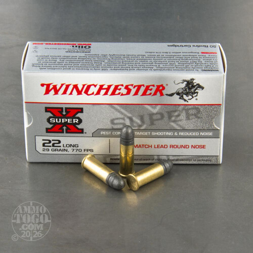 This is .22 Long Winchester 29gr. LRN Conical Ball (CB Long) Match Ammo. This Winchester ammo is a sub-sonic or low noise round. It's great for plinking and target. This ammo comes packed in 50rd boxes.