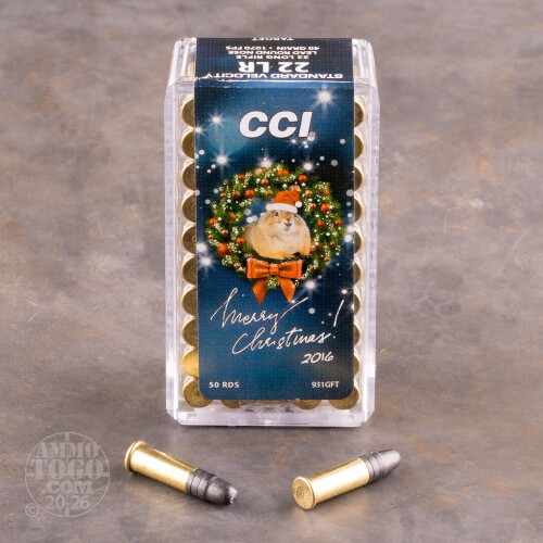 This 500-round brick of .22 LR ammunition from CCI comes in special packaging for Christmas 2016 and makes an excellent gift for friends or family who enjoy shooting. These cartridges use a standard velocity load that fires a 40 grain lead round nose bullet at a subsonic muzzle velocity of 1,070 feet per second. This ammo works particularly well with suppressors since it does not cross the sound barrier. CCI ammo is loaded in Lewiston, Idaho and enjoys a reputation as some of the most reliable available.-