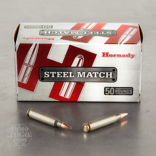 This 223 Rem cartridge from Hornady’s Steel Match line of ammunition is a great way to lower your shooting expenditures without doing away with the great performance you demand from your ammunition. The round owes its appealing price tag to its steel casing, a significantly less expensive option than the brass alternative. The casing is coated in a very thin layer of polymer to assure reliable cycling, without leaving behind an undesirable residue in its wake. As is always the case with steel casings, you’ll not have fun reloading this round, but that alone is the only significant disadvantage to consider before investing in it.This cartridge dons an intensely accurate 55 grain Match Grade projectile. The bullet’s narrow meplat thoroughly heightens its ballistic coefficient, and its thin and exceptionally thin jacket ensures its rotational stability for accurate flight. The bullet also features a cannelure that is cast rather than pressed into its body.