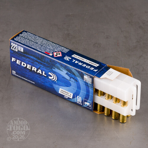 If varmints are giving you grief, grab a case of this .223 Remington ammunition from Federal's American Eagle series and put your AR-15 or other .223/5.56 NATO rifle to work clearing them out. These inexpensive hollow points deliver great fragmentation against coyotes, groundhogs, rabbits, and other small pest animals. Each round fires a light 50 grain bullet at a high velocity that helps ensure optimal terminal performance. Like other Federal products, this ammo is made in the USA and uses non-corrosive primers and re-loadable brass cases.