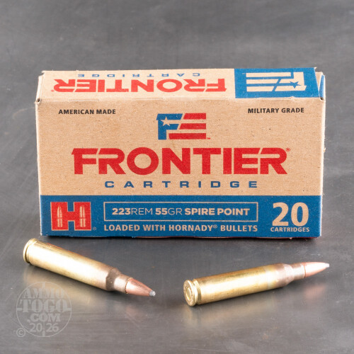 Hornady's Frontier line of ammunition stands for affordable quality. These 223 Rem cartridges were crafted at the Lake City Army Ammunition Plant, which produces well over one billion rounds of ammunition annually. The sprawling factory’s optimized production process ensures that this ammo can achieve most any goal -- but without setting you back too much in the process.Each of these rounds is topped with a 55 grain projectile, the vanilla weight for their caliber. The bullet’s supersonic muzzle velocity and uniformly distributed weight convey stellar accuracy, and because it is a soft point it expands after impact to take down a varmint or threat quickly.