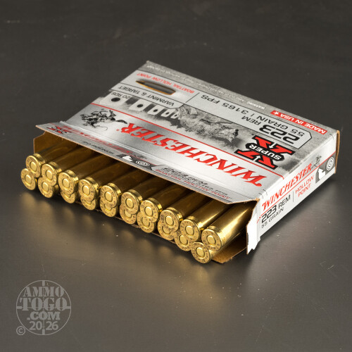 One measly box of 223 Rem ammo has never been enough for a real AR-15 enthusiast. You need a whole case of ammo to get into the zone – and whether that zone entails target shooting or varmint and predator hunting, Winchester’s Super-X line of ammo will have you covered.This cartridge features the versatile 55 grain boat tail hollow point projectile. First things first: The BTHP is not an expanding bullet. Its terminal performance is comparable to that of a simple FMJ, so it’s a poor choice for taking game larger than a coyote.