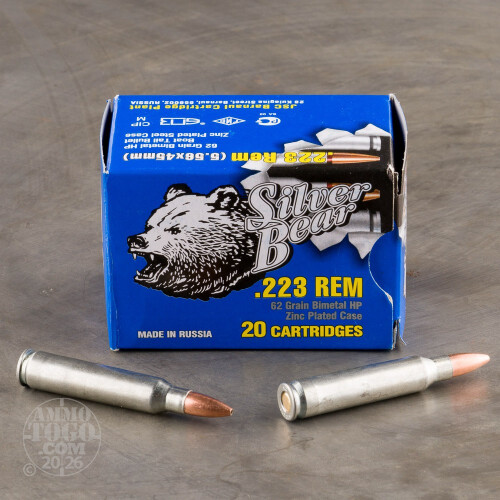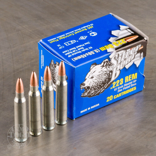 500rds - .223 Silver Bear 62gr. Hollow Point Ammo Details