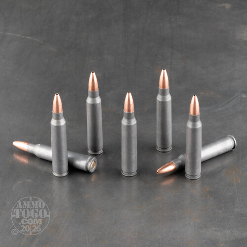These .223 Remington rounds are assembled using non-reloadable steel casings, non-corrosive Berdan primers, and bi-metal hollow-point projectiles. The bullets weigh in at 55 grains and possess thinner jackets up top which cover their hollow cavities. Upon impact with a target, the projectile is designed to expand and fragment in order to deliver maximum energy and shock to vital zones. This not only humanely drops a game animal but prevents over-penetration which could cause inadvertent damage to others. 55 grains is quite common to the .223 caliber and matches the flight characteristics of the most popular practice ammunition.
