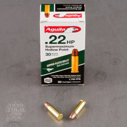 500rds - 22LR Aguila Super Max 30gr. Hyper Velocity Hollow Point Ammo Details