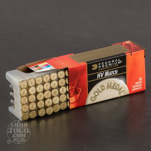 This is .22 Long Rifle Federal Gold Medal High Velocity Match 40gr. Solid Point Ammo. The spirit of Federal's silver and gold medal wins in the 1992 Olympic games still lives in every round of high quality Gold Medal rimfire ammunition we produce. Our 40-grain Gold Medal options in 22 Long Rifle are both very capable and high-quality offerings that will help you take your own championship medal home. This ammo has a muzzle velocity of 1200fps. and is packed in 50rd. boxes, 500rds per brick.