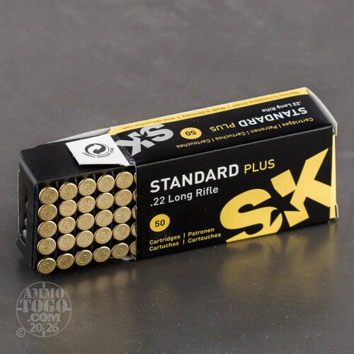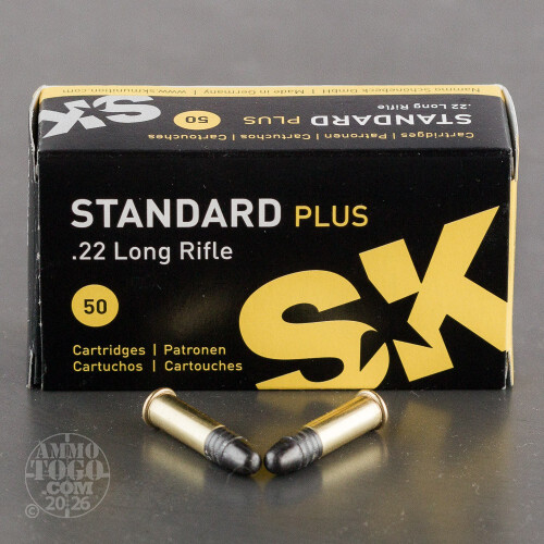 This is .22 Long Rifle SK Standard Plus 40gr. Solid Point Ammo. SK rimfire ammunition is manufactured to strict tolerances. Each individual cartridge is inspected at the factory and fifty cartridges from each batch are tested to make sure that the highest quality rimfire ammunition is reaching the consumer. This ammo has a muzzle velocity of 1050 FPS. It is packed in 50rd. boxes, 500rds per brick.