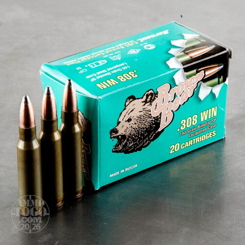 Bulk .308 Brown Bear 140 Grain Soft Point Ammo – 500 Rounds